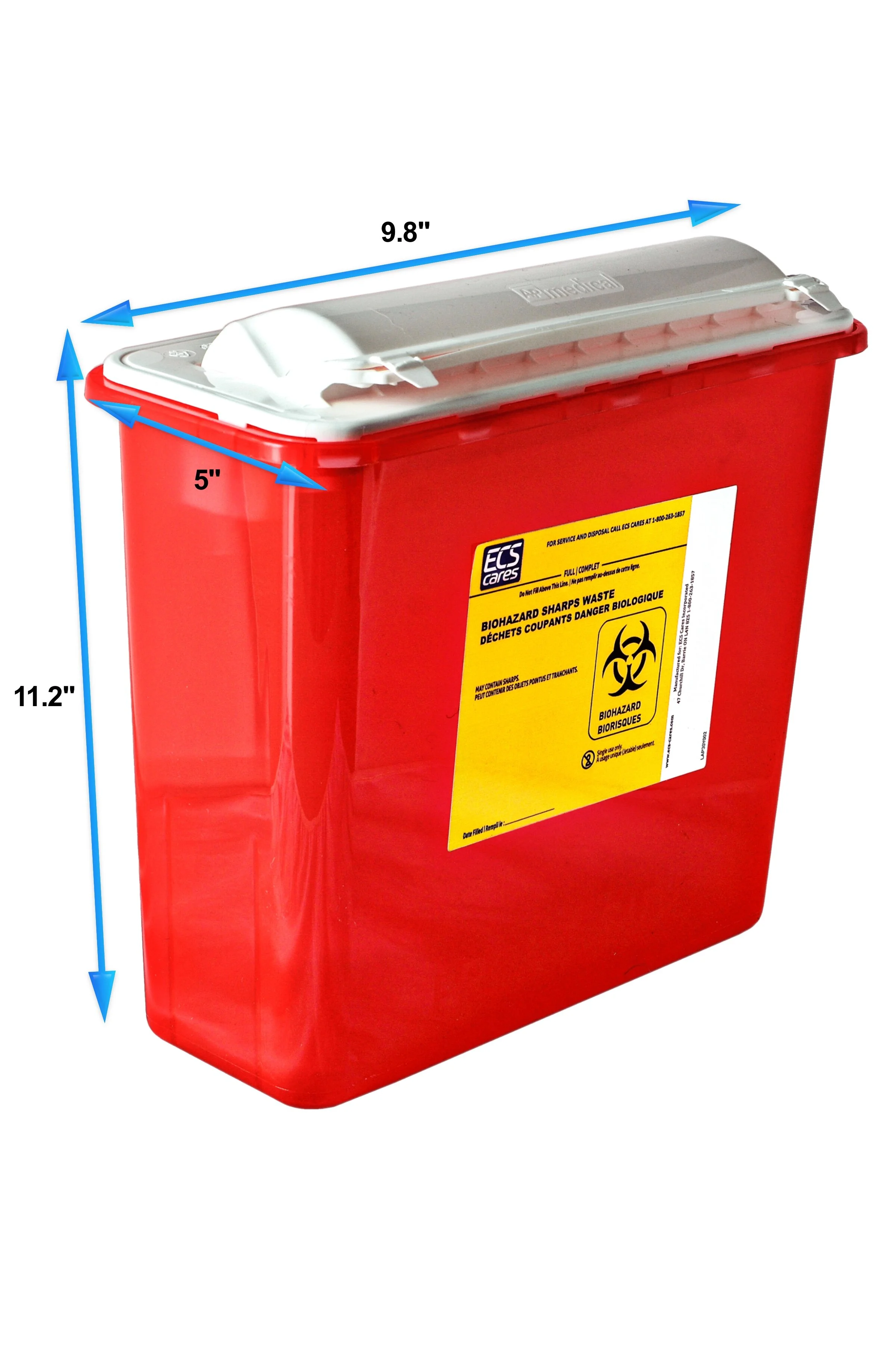 The AP 5.4-Quart Sharps Container is built strong and durable. It is specifically designed to be wall-mounted but is still sturdy if placed on a countertop. The rotating lid will safely eject the needle into the container. The lid may temporarily be closed when not in use for added safety.