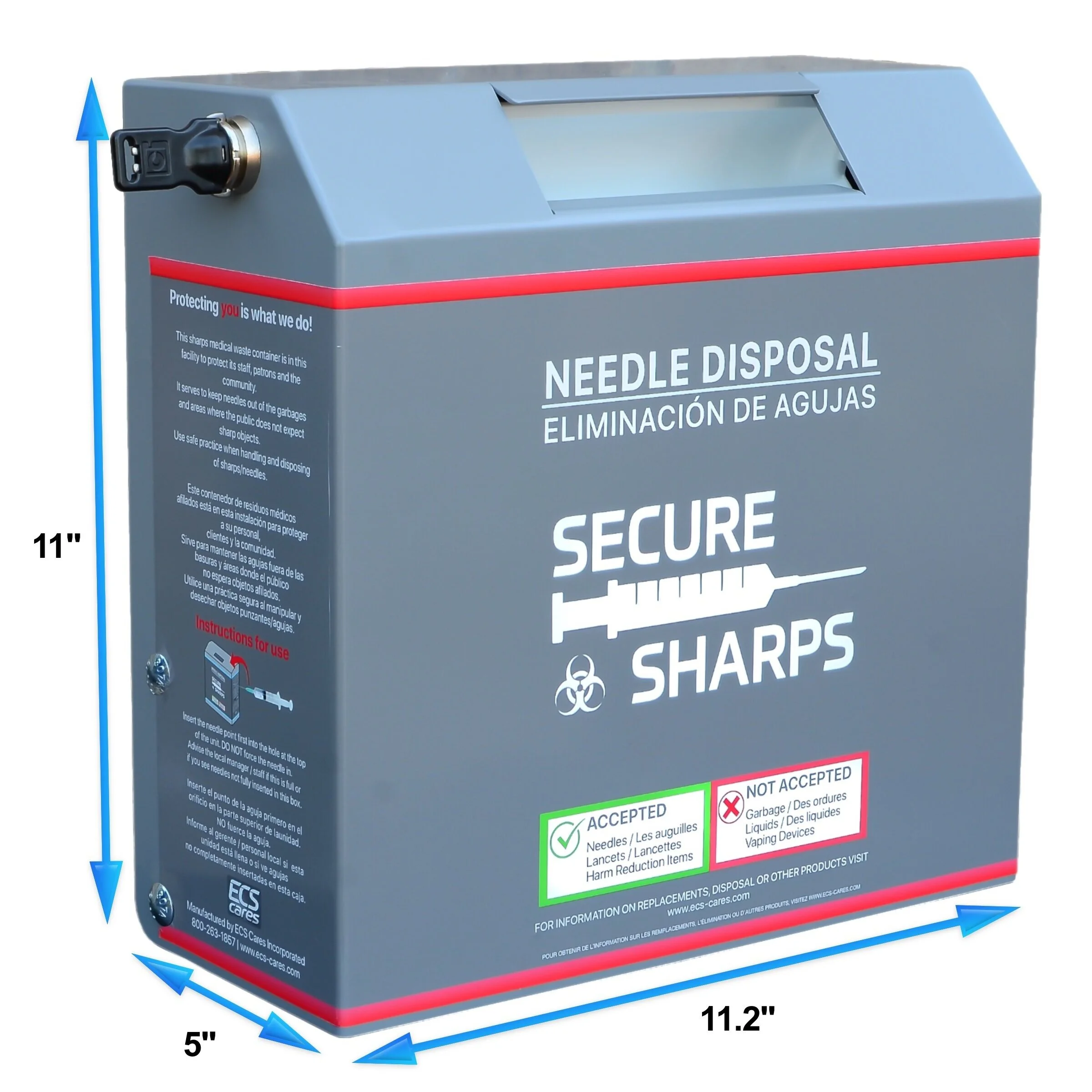 This needle dropbox is perfect for the healthcare industry and many other industries such as veterinarian clinics, tattoo parlors, restaurants, hotels, and more.